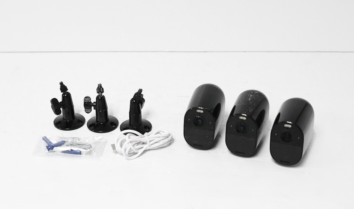 Functional Condition: tested/fully functional Condition: Used/Acceptable - item shows visible signs of use such as scratches, scrapes, scuffs etc. Description: Includes 3x Cameras, 3x Wall Mount and Screw Kit, Charging Cable. Scratched bodies. No other accessories are included. |