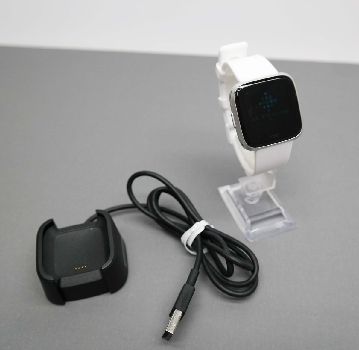 Description: Includes Smart Watch, Charging cable, White Large Band. Scratches on the screen and body.