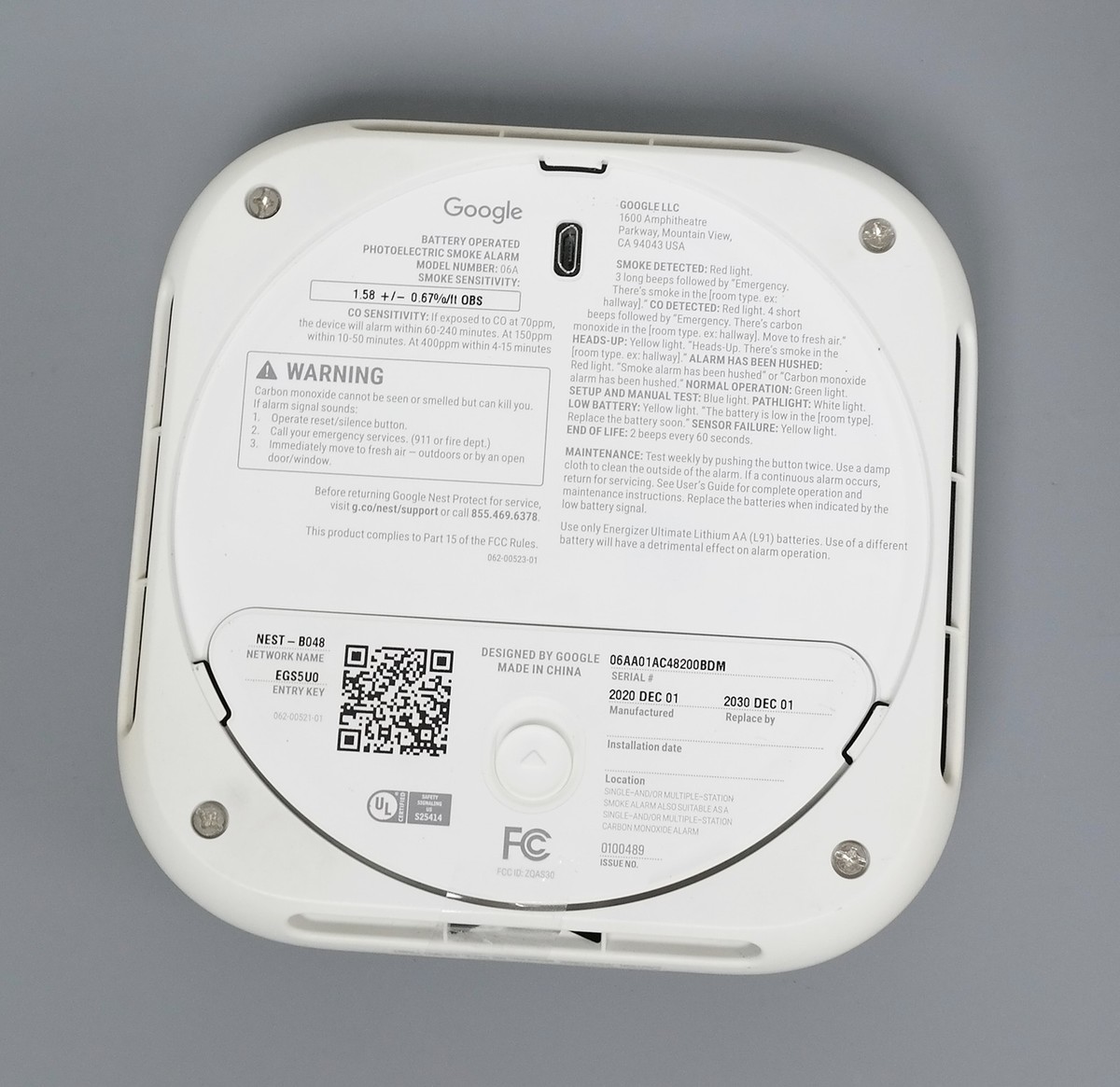 | Google Nest Protect 2nd Gen S3000BWES BATTERY Smoke and Carbon Monoxide Alarm |