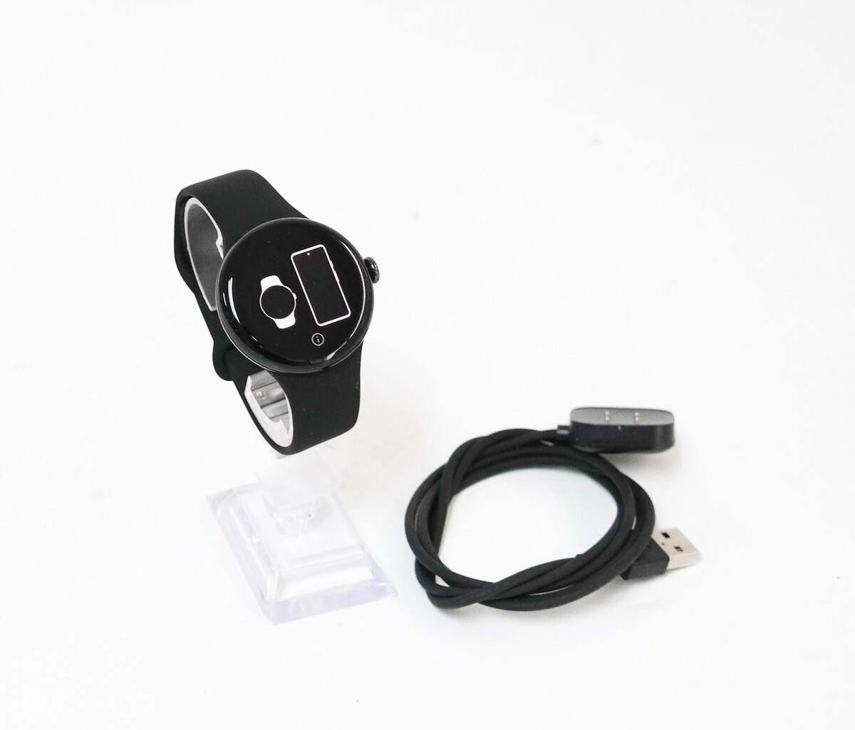Functional Condition: tested/fully functional Cosmetic Condition: Used/Good - item shows little signs of use. Description: Includes Watch (Black), Band (Black) (large ONLY), Charging cable. No other accessories are included. |