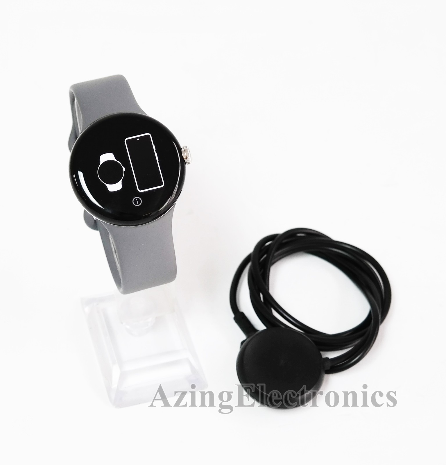 Google Pixel Watch 41mm Polished Silver Case with Charcoal Band Large GA03305-US |