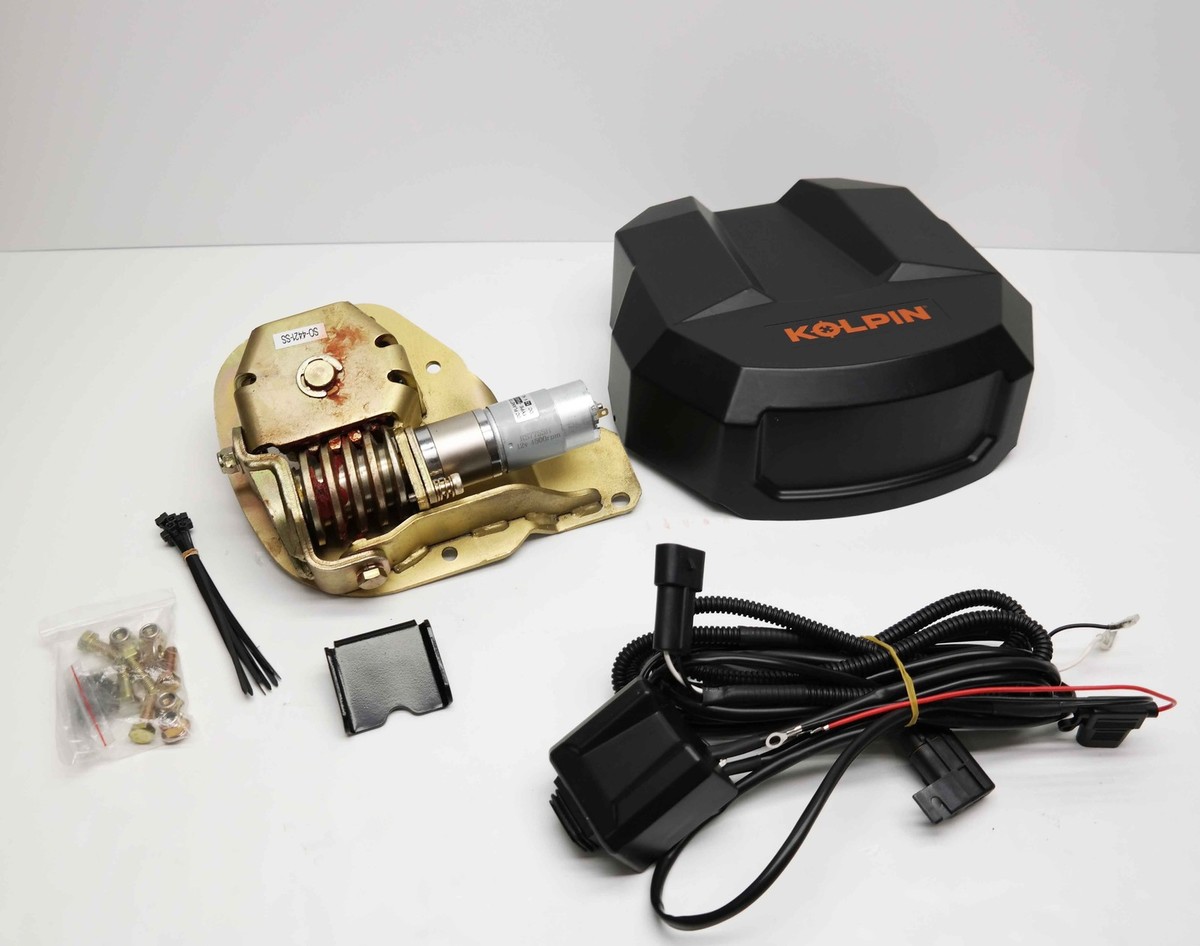 Description: Includes Power Angle Motor Assembly, Gear Assembly / Worm Gear Mechanism, Welded Frame Assembly, Motor Mounting Plate, Handlebar Switch Control, Wiring Harness with Fuse (vehicle side), Wiring Harness (motor side), Handlebar Clamp Brackets, Mounting Plate & Brackets, Hardware Kit. Marks on the body.