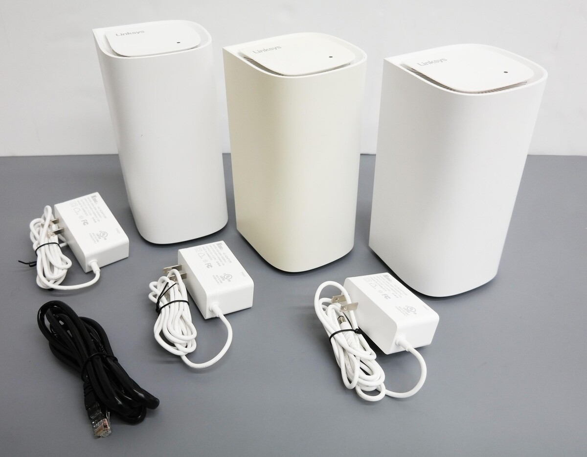 Description: Includes 3x Router Units, Power Adapter, Ethernet Cable. Scratches and discoloration on the bodies.