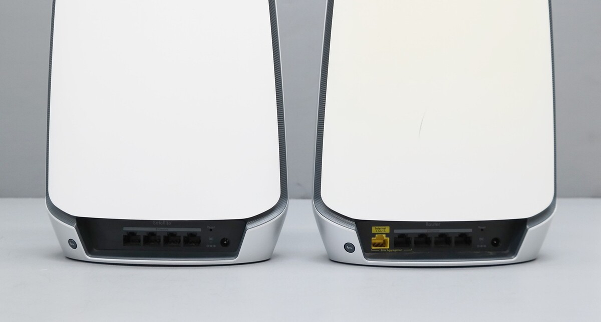 Description: Includes Retail Packaging, One Orbi Router (RBR850), One Orbi Satellite (RBS850), One 2m Ethernet cable, Two power adapters. Scratched and yellowed bodies.
