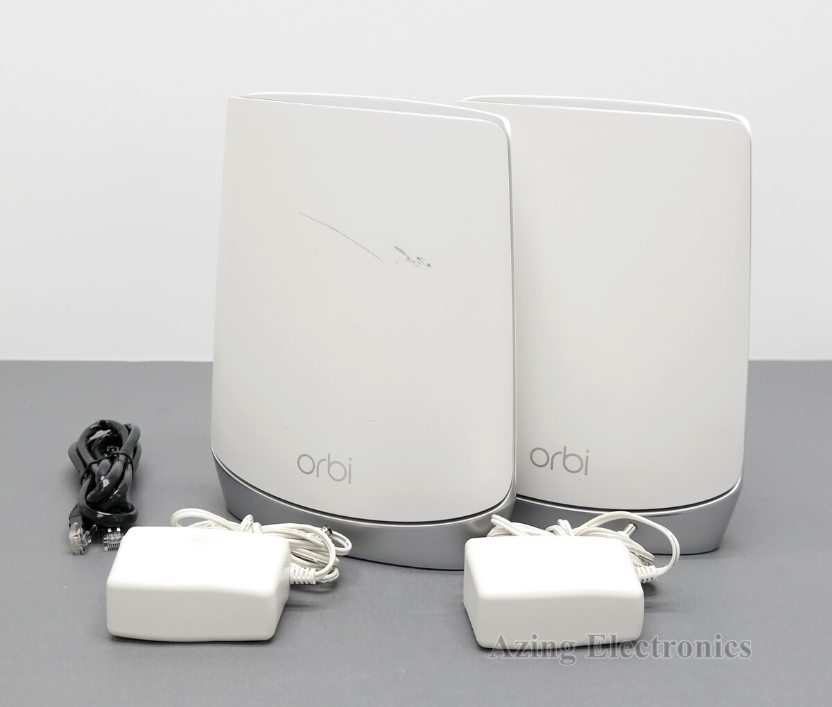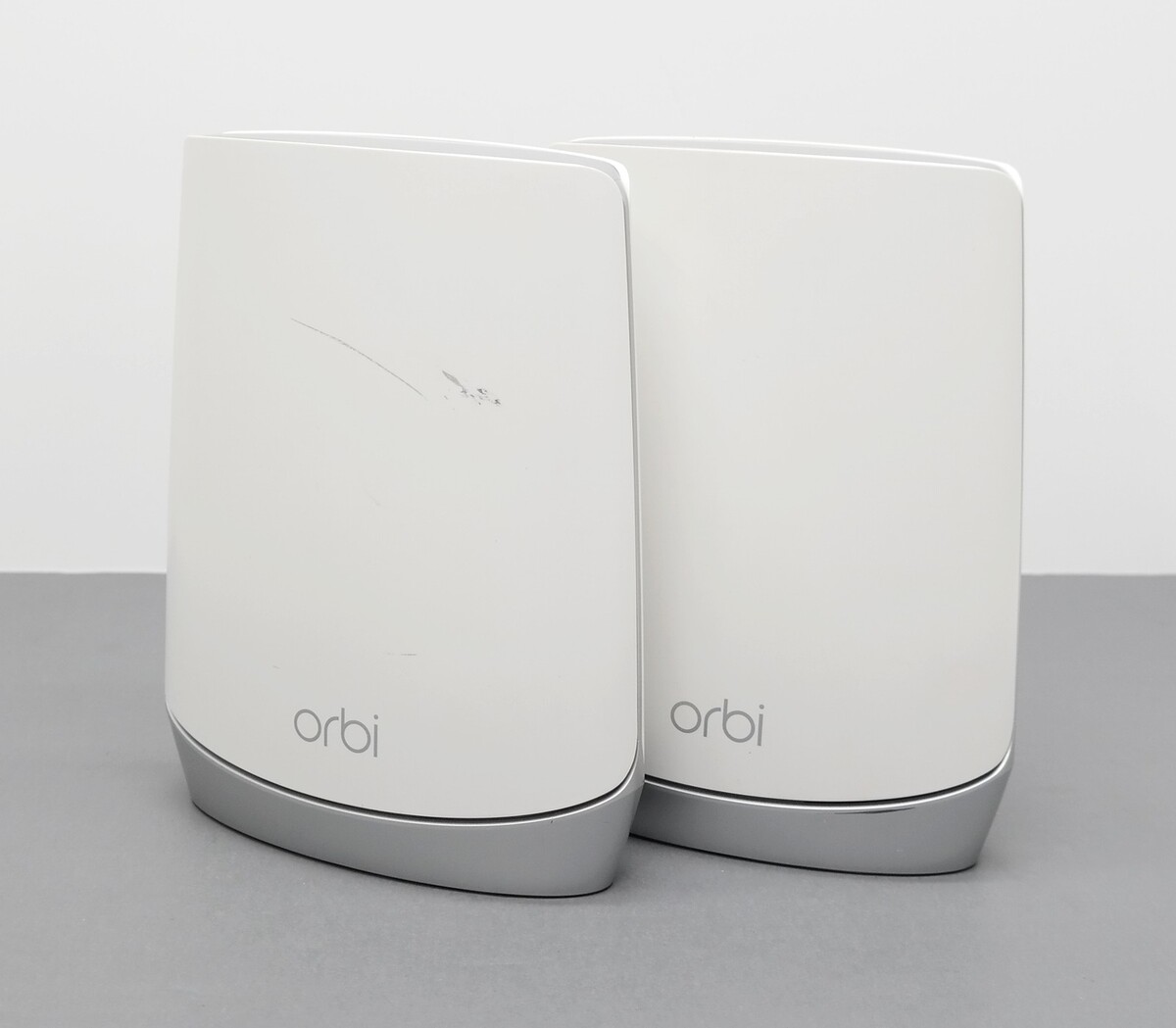 Description: Includes Router (RBR750), Satellite (RBS750), 2 x Power adapters, Ethernet Cable. Scuffs and discoloration on the bodies (yellowed).