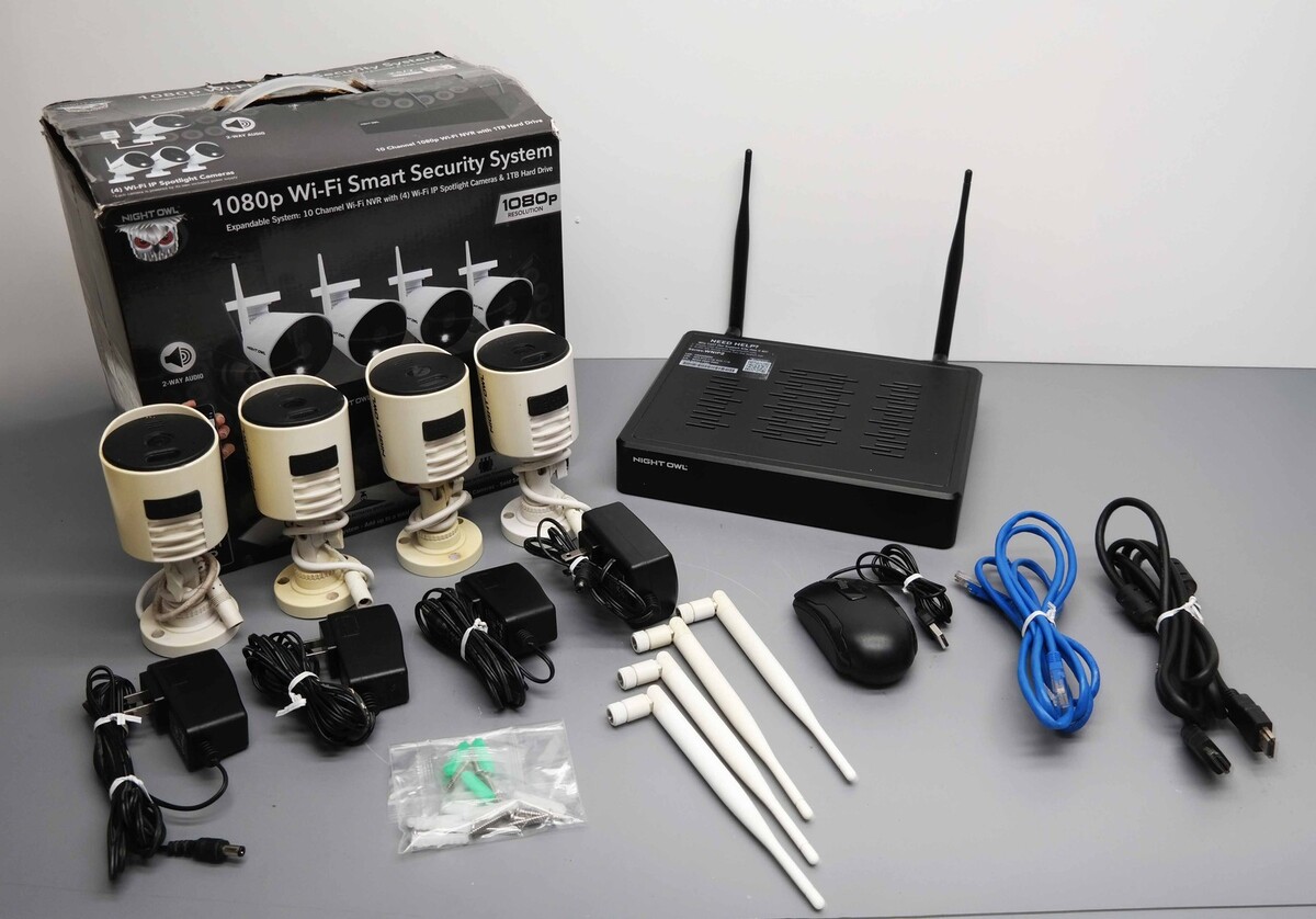 Functional Condition: tested/fully functional Condition: Used/Acceptable - item shows visible signs of use such as scratches, scrapes, scuffs etc. Description: Includes Retail Packaging, NVR with a pre-installed 1TB hard drive, 2 x Wi-Fi antennas, Power adapter, HDMI cable, Ethernet cable, USB mouse, 4 x cameras, 4 x camera antennas, 4 x power adapters, Mounting hardware. Scratches on the bodies of cameras and DVR. Yellowed cameras' bodies. No other accessories are included. |