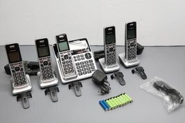 Functional Condition: tested/fully functional Cosmetic Condition: Used/Good - item shows little signs of use. Description: Includes Base unit with digital answering system, Five cordless handsets, Six AAA rechargeable batteries, Charging bases for the handsets. No other accessories are included. |