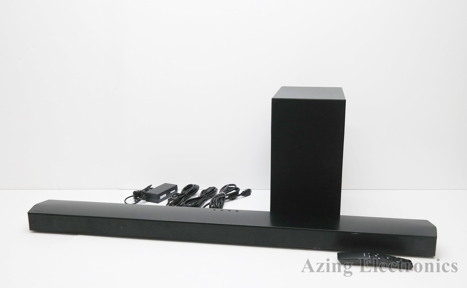 Functional Condition: tested/fully functional Condition: Used/Acceptable - item shows visible signs of use such as scratches, scrapes, scuffs etc. Description: Includes Soundbar, Subwoofer, Remote Control with Batteries, HDMI Cable, Power Adapter, 2 x Power Cords. Scratches on the bodies of the soundbar and sub. Small tears in the fabric mesh grill on the subwoofer. Chipped edges and corners. No other accessories are included. |