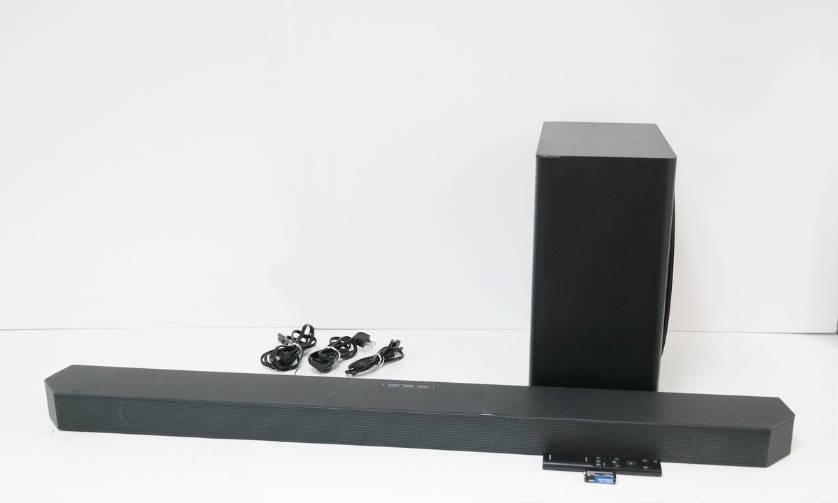 Description: Includes Soundbar, Wireless Subwoofer, Remote controller with batteries, 2 x Power cables, HDMI cable. Scratches and scuf sont he bodues. Chipped edges of sub. Dents on the soundbar.