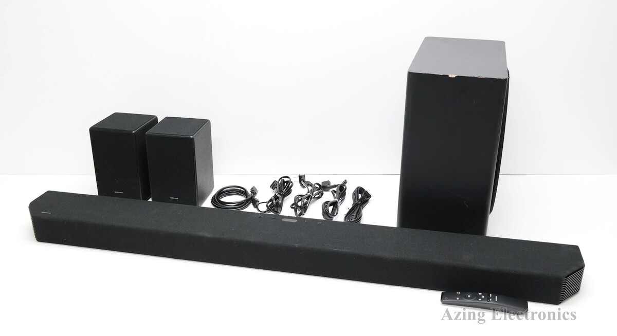 Functional Condition: tested/fully functional Condition: Used/Acceptable - item shows visible signs of use such as scratches, scrapes, scuffs etc. Description: Includes Soundbar, Subwoofer, 2 Rear Speakers, 4 Power Cords, HDMI Cable, Remote Control. Missing Mounting Brackets. Scratches and scrapes on the bodies of the soundbar, subwoofer, and rear speakers. Scuffs and chips on the body of subwoofer. No other accessories are included. |