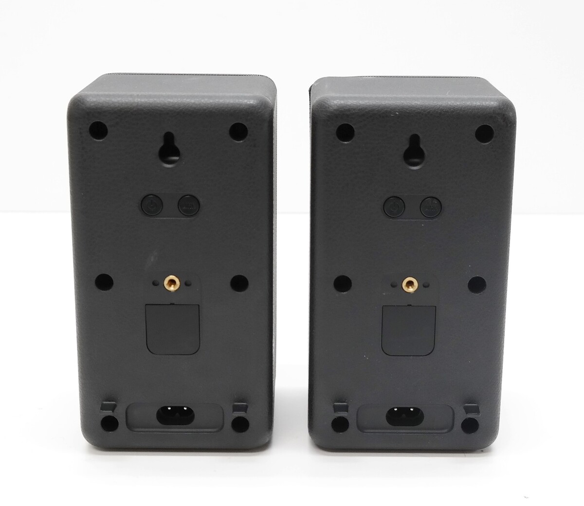 Description: Includes Two Speakers and Two AC Power Cords. Scratches and scuffs on the bodies. Dents on corners.
