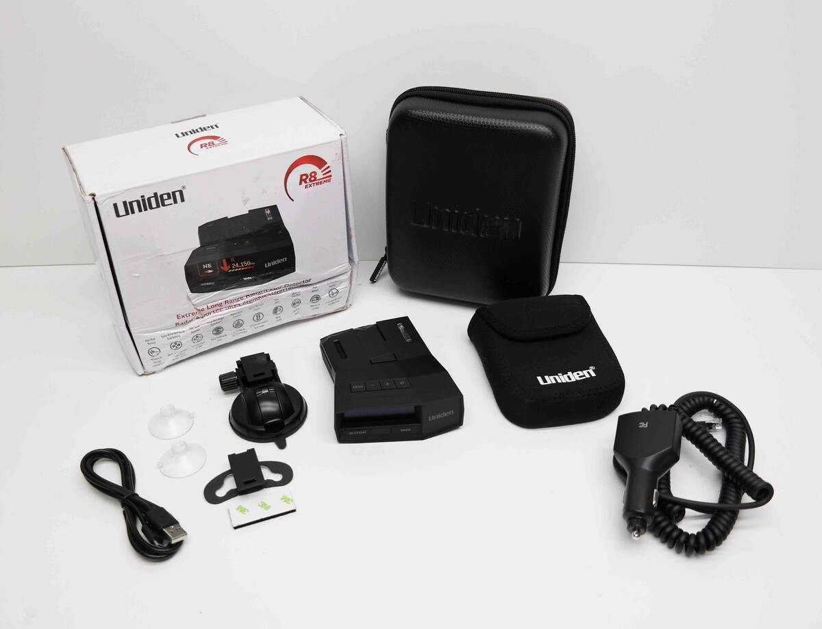 You will receive: New item in open box. Includes Retail Packaging, R8 unit, Dual and Single suction cup windshield mounts, Power cord, Neoprene Carrying Case, Data cable, Hook & Loop tape for Dash Mount, Zippered Carrying Case.