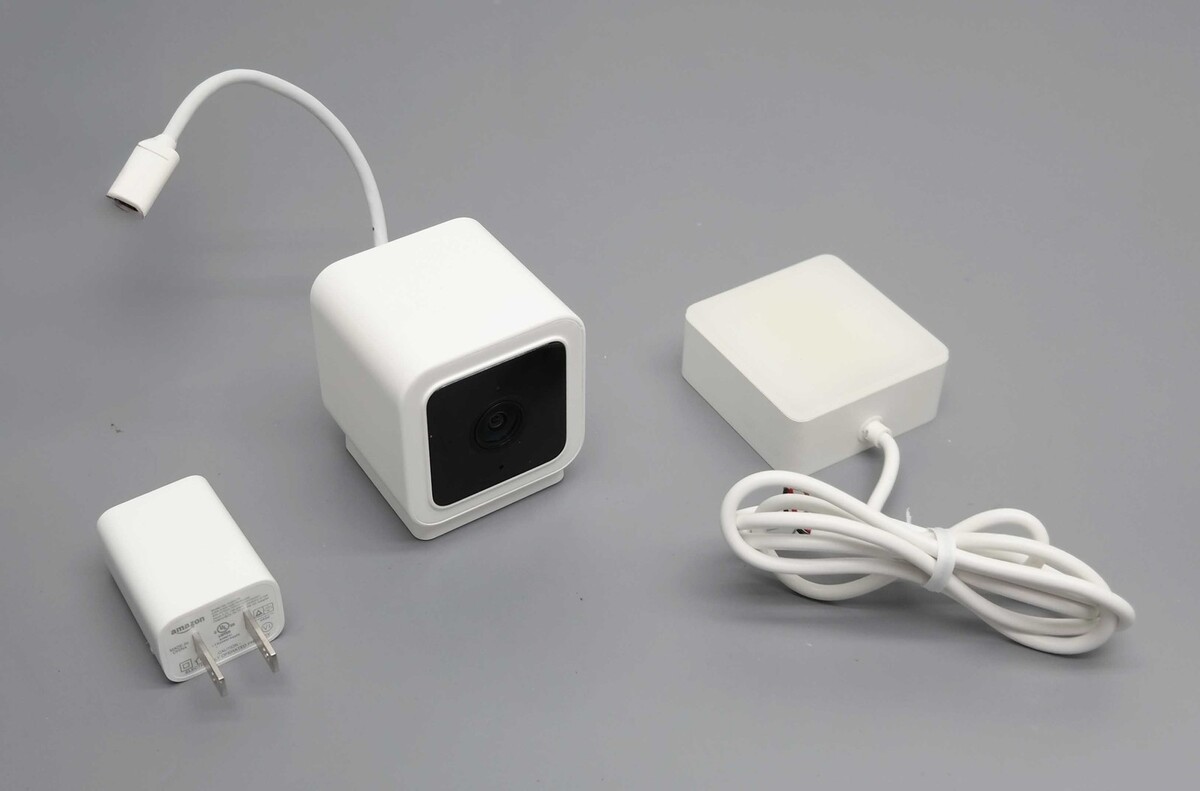 Description: Includes Controller, Wyze Cam v3 and Power Adapter. Scratches on the bodies of camera and controller. Light yellowish tint to controller's body.